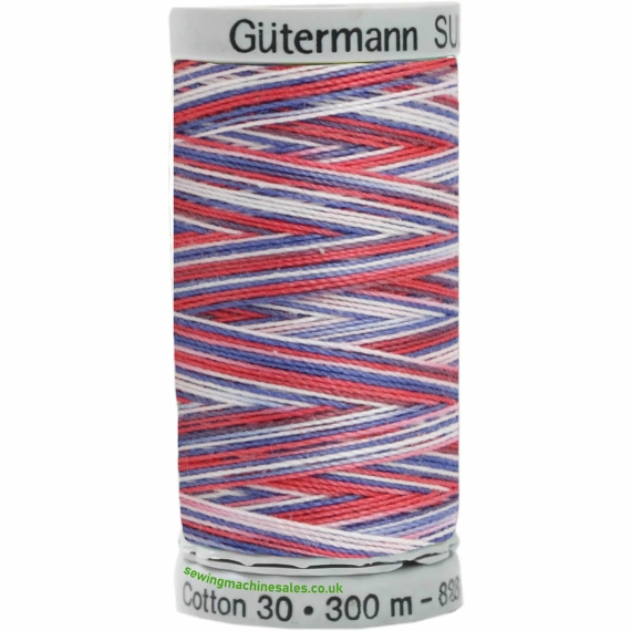 Colour: Blue, Red, White. Colour code: 4105. Type: Gutermann Sulky Cotton Variegated Thread. Size: 300M