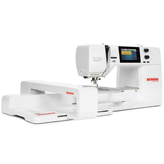 The first dedicated embroidery BERNINA is the 500E that packs lots of power, and it can sew designs up to 40 cm x 15 cm - enough for a most. An incredible designs collection of ready to sew designs are built in. The 256 MB memory leaves enough space to edit or create your own custom designs and store them in the machine to stitch at a later date.
