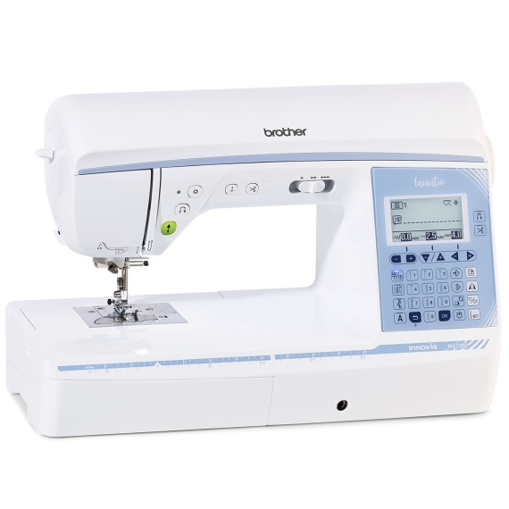 The Invention NV1350Q sewing machine is a new edition to the Brother range. It's computerised and packed with features. For example, after stitching a seam, all that is needed, is a press on the "thread trimming" button and hey-presto both the top and bottom threads have been cut and trimmed. No need to get the scissors out, plus it is a big time saver when needing to sew many patchwork pieces together.