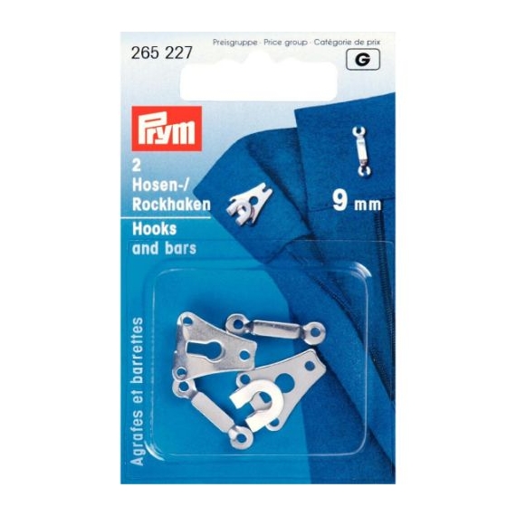 Prym Trouser & Skirt Hooks/Bars 9mm Silver