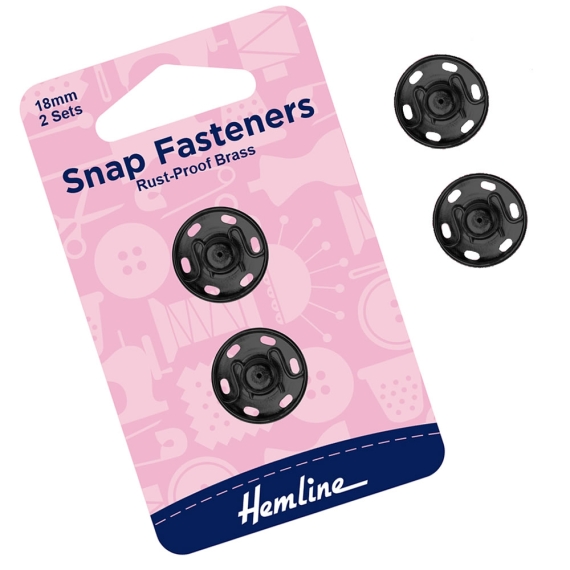 Sew-On Snap Fasteners In Black Size (3/4") 18mm - 2 Set