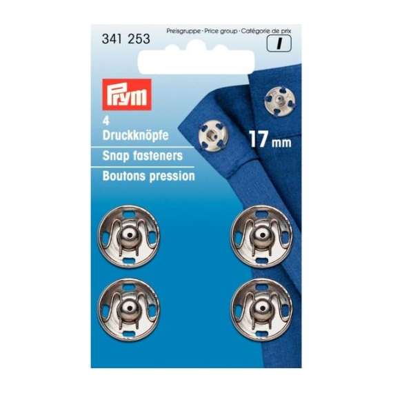Premium quality as always by Prym. 17mm Sew in Silver snap fasteners are very strong indeed. When extra strength is required to keep that garment closed... Look no further. Sold in a pack of 4.