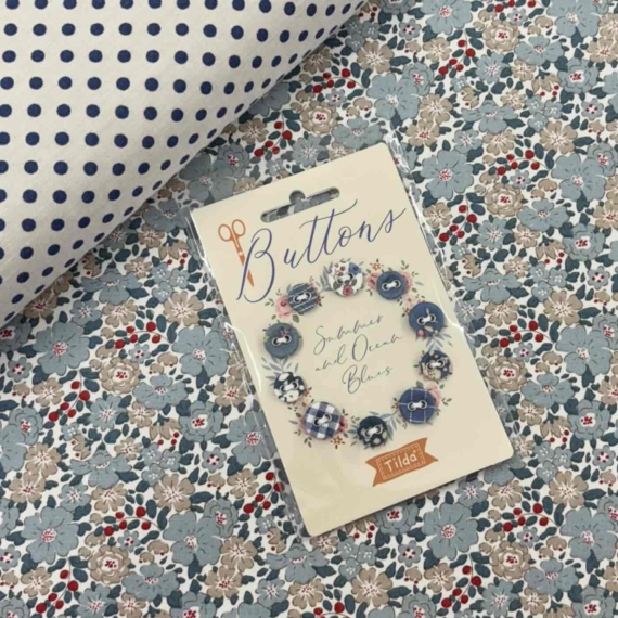 We are delighted to be stocking the stunning Tilda 10 Pack of Buttons from the Creating Memories Summer and Ocean Blues Collection. This pack includes 10 buttons, 10mm and 12mm with 100% cotton fabric covering