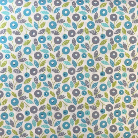 This is a 100% cotton fabric. This blue and green fabric is ideal for dressmaking, quilting and garden/outdoor projects.
