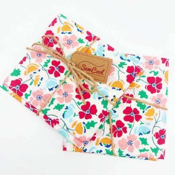 This particular pattern can also be paired with other floral designs or various colours included within the design such as red, orange, green or blue. It will make a lovely addition to your fabric stash! These fat quarters come tied in brown twine.