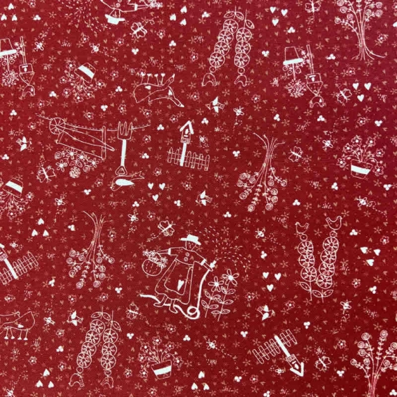 This is a 100% cotton Lynette Anderson fabric. This burgundy fabric is ideal for dressmaking, quilting and garden/outdoor projects.