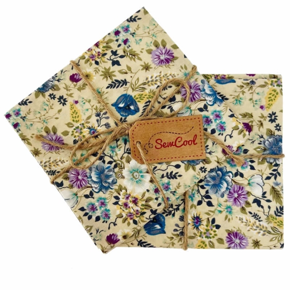 This particular pattern can also be paired with other floral designs or shades of blue or ecru. It will make a lovely addition to your fabric stash! These fat quarters come tied in brown twine.