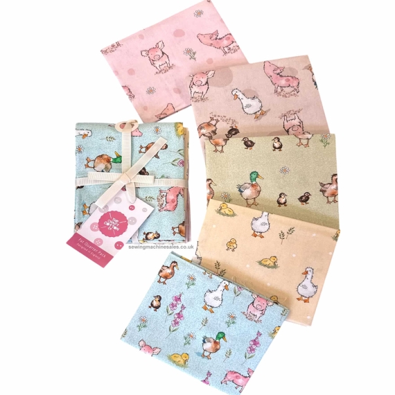 A sweet selection of 100% cotton fabrics designed by Susan Wheeler, featuring adorable farmyard animals set against soft pastel backgrounds. With a range of cute farmyard animals, this fabric is idea lfor all animal lovers and for young children.