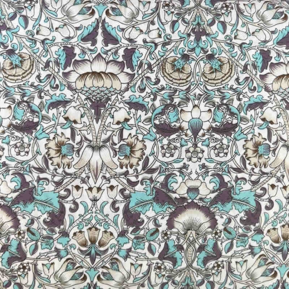 100% cotton grey and turquoise William Morris inspired fabric, ideal for dressmaking, quilting and home decor projects.