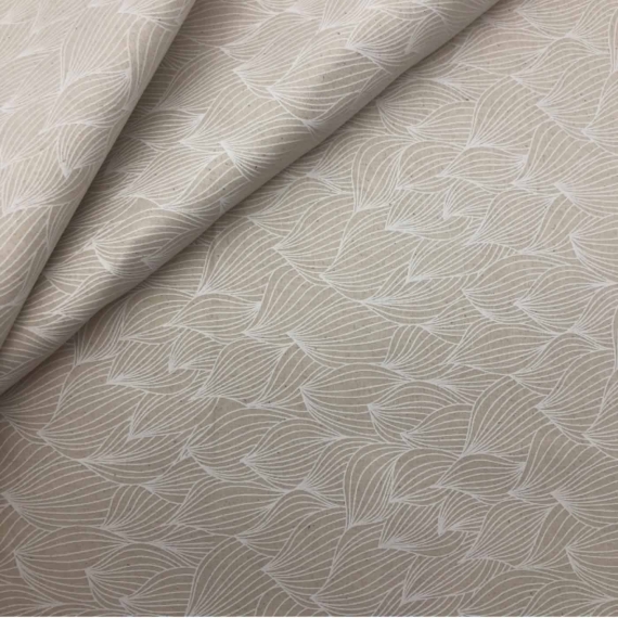 Add this subtly beautiful fabric in an Art Deco style Leaf Print in Natural to your next sewing project. Designed as a blender this fabric works brilliantly alone or paired with other fabrics with similar colours and shapes. This fabric would be ideal for making cushion covers, summer beach tote bags and much more! Also available in Ivory and White