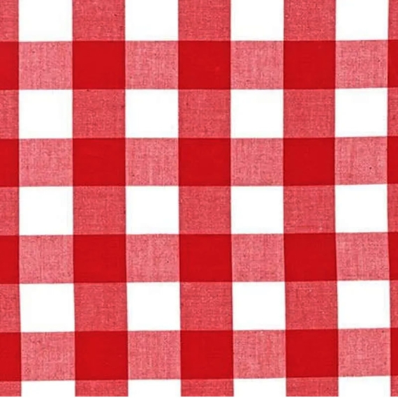 This red 1/4" gingham is a polycotton fabric. It is 65% poly and 35% cotton, this gingham fabric is ideal for dressmaking & home decor projects.