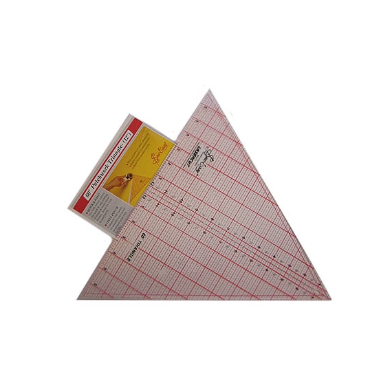 The perfect ruler for cutting equilateral triangles and 60 degree diamonds. Very popular for 6 pointed star designs ang pyramids. Ideal for cutting large diamonds and triangles cut from strips. Clear easy to read lines in 1/8" increments.