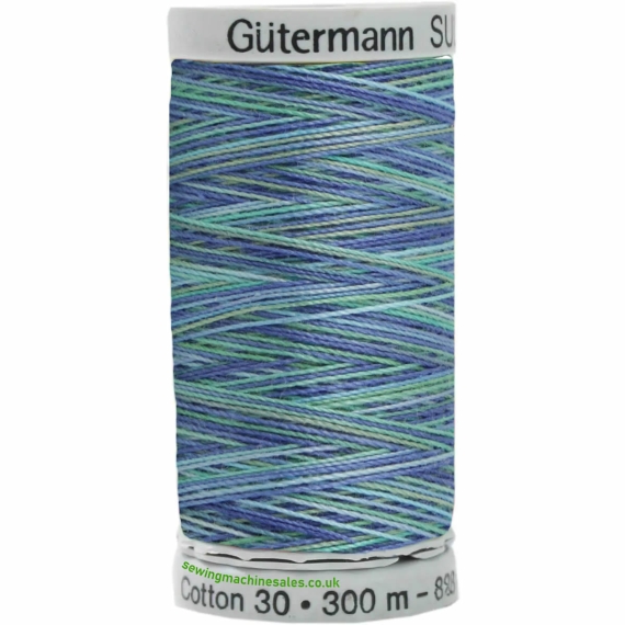 Colour: Blue, Green. Colour code: 4016. Type: Gutermann Sulky Cotton Variegated Thread. Size: 300M
