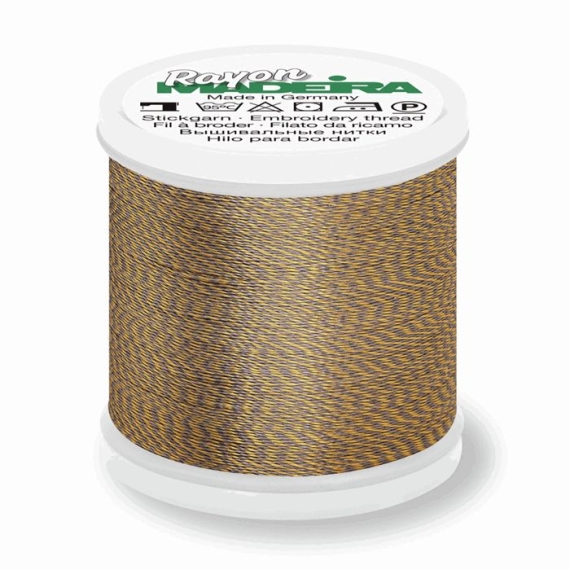 Machine embroidery thread, Melange colours for creating exciting shading effects. Two contrary solid colored strands twisted together can add a natural appearance to an embroidery, for instance to the skin of a animals coat.