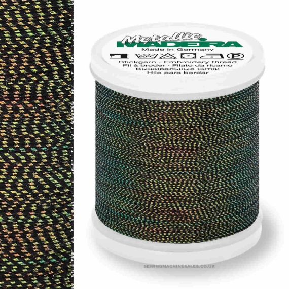 Machine embroidery twisted Metallic thread 40wt in mixed colours. This multi stranded twisted thread gives good background effect. Made by Madeira its the standard weight of machine metallic thread and the most widely used metallic thread in the world.