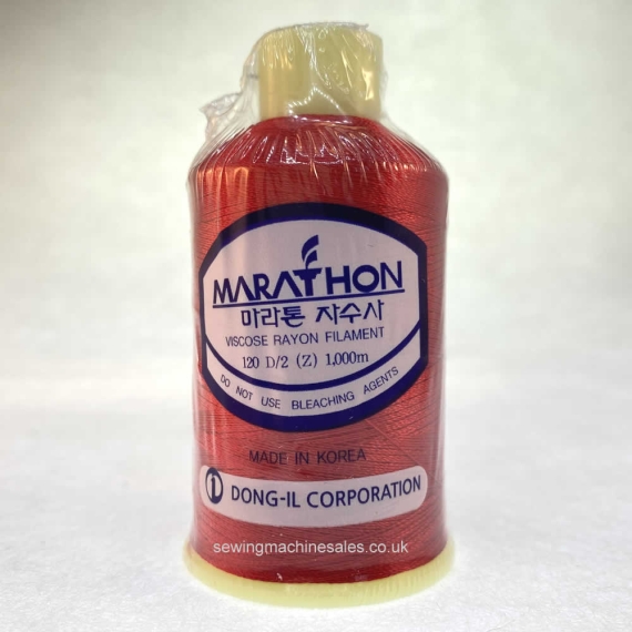 Marathon Cranberry Red thread is ready to use straight from it's cone. Each cone is 1000m which will last you a good length of time when embroidering. It is Viscose Rayon Filament which can be used on regular sewing machines or on any type of embroidery machine, whilst doing decorative stitching.