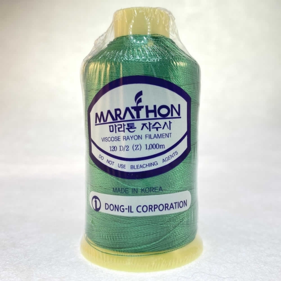 Marathon Forest Green thread is ready to use straight from it's cone. Each cone is 1000m which will last you a good length of time when embroidering. It is Viscose Rayon Filament which can be used on regular sewing machines or on any type of embroidery machine, whilst doing decorative stitching.