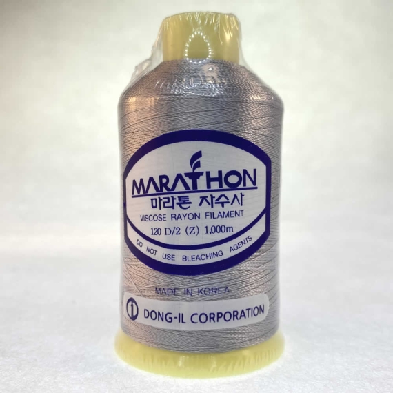 Marathon Granite Grey thread is ready to use straight from it's cone. Each cone is 1000m which will last you a good length of time when embroidering. It is Viscose Rayon Filament which can be used on regular sewing machines or on any type of embroidery machine, whilst doing decorative stitching.
