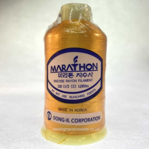 Marathon Papaya Orange thread is ready to use straight from it's cone. Each cone is 1000m which will last you a good length of time when embroidering. It is Viscose Rayon Filament which can be used on regular sewing machines or on any type of embroidery machine, whilst doing decorative stitching.