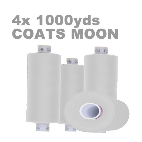 Coats moon thread is the best quality overlock thread on the market, these 1000 yard spools usually sell for £1.20 each but bought as a bundel of 4 you save over 20p on each spool. This bundle is for 4 x 1000yard spool of white Coats Moon 120 spun polyester overlocking thread, perfect for any domestic overlock machine or sewing machine.