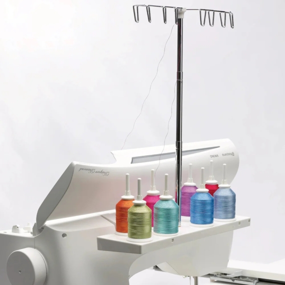 Enhance your sewing setup with the Husqvarna Viking Eight Spool Thread Rack – the ideal companion for embroidery precision and organisation.