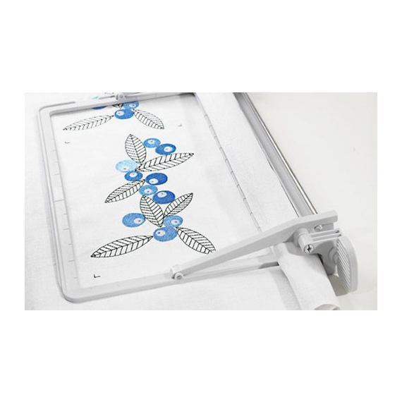 Huge endless border can be achieved with this unique hoop, Alignment stitches can be placed at the end of a design to allow the next boarder or design to be placed in the correct position. The quick release hoop will hold the fabric in place. You can use all types of fabric stabilizer if needed. The Mega endless hoop by Husqvarna is 10-1/4" x 6" (260mm x 150mm)