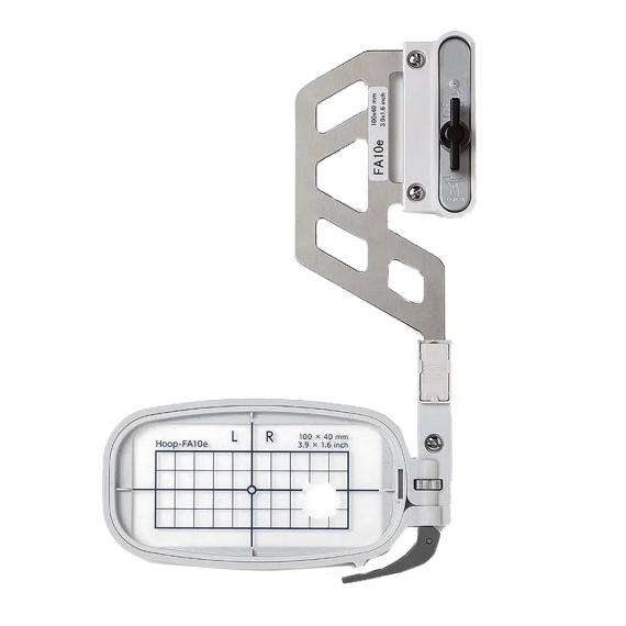 The Janome FA10e Embroidery Hoop is specifically engineered for use with the Memory Craft 1000 and 100E embroidery machines. It's free arm design enables precise embroidery in tight or narrow areas such as; sleeves, pant legs, cuffs, and other fully constructed garments - where standard hoops cannot easily reach. This specialized configuration enhances stitching accuracy and simplifies work on hard to access sections of a project.