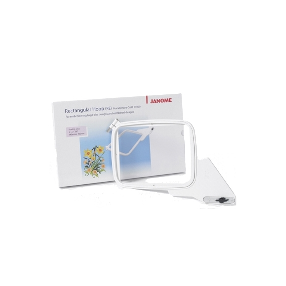 This Memory Craft 11000 compatible rectangular hoop has an embroidery field of 5.5 X 8, adding yet another size option for your favourite embroidery designs. The RE Hoop is a necessary addition to your MC11000 accessories if you wish to utilize the option
