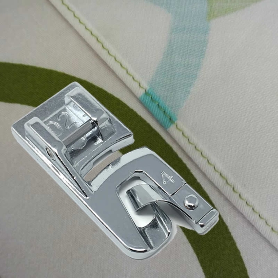 The hemmer foot, is used to create neat and perfect seams it automatically folds the fabric edge to product a seam that will not fray. Use with machine normally set to straight stitch, however you can also use a narrow zig-zag stitch.