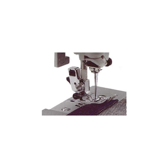 The zig zag foot with ankle set has a snap up foot for sewing over rises at the beginning of or in the body of your fabric. Simply tilt the foot and pull the button to set the foot. When a rise is encountered, the foot automatically realeases on its downward slope. No more getting stuck at a rise or uneven stitches on the down side! This is also a great item to have on hand as a replacement for a lost or damaged ankle.Brother Self leveling Zig Zag Foot and Foot Holder.