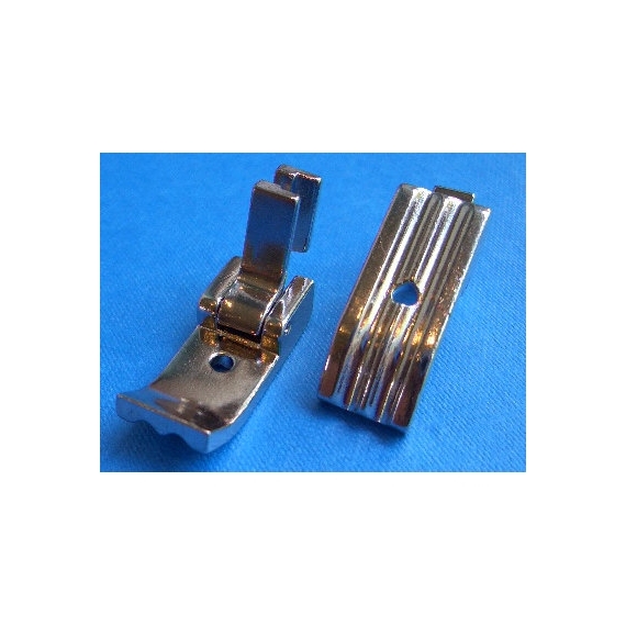 Screw on type double sided piping foot ideal for making and applying corded piping. Its double sided so you can stitch both right and left sides makes working with fabric easy, made for 1/8" piping often used in many home decoration projects such as sewing piping and other trims with a seam allowance tape making this foot a must for serious sewists. Universal low type screw on for Singer, Brother, Jones, Newhome, Janome, Elna, Toyota, Riccar, Pfaff