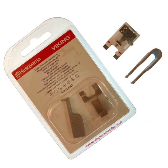 This presser foot is perfect for sewing on buttons that are slightly raised up off the fabric, to give a slight thread shank to enable easier buttoning. This also helps prevent the button from being sewn too tightly to the fabric.