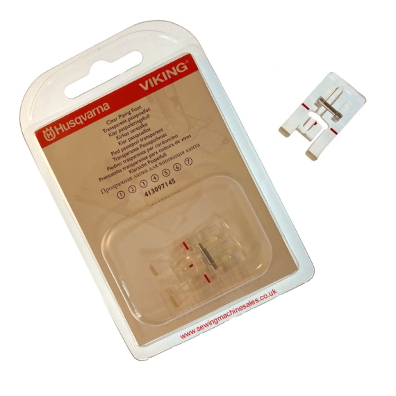 This clear piping foot is perfect for inserting packaged piping into seams and edges for a professional, tailored finish. Cover cord with fabric for specialty piping.