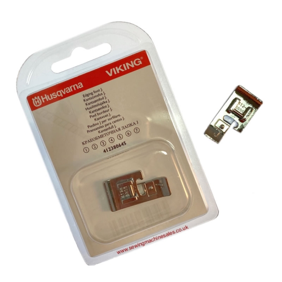 Using the edging foot J is super easy, simply snap on the Edging foot J, select an overcast or overedge stitch and turn the hand wheel by hand, to be sure the needle does not hit the foot. Finally, adjust stitch width as needed and happy sewing!