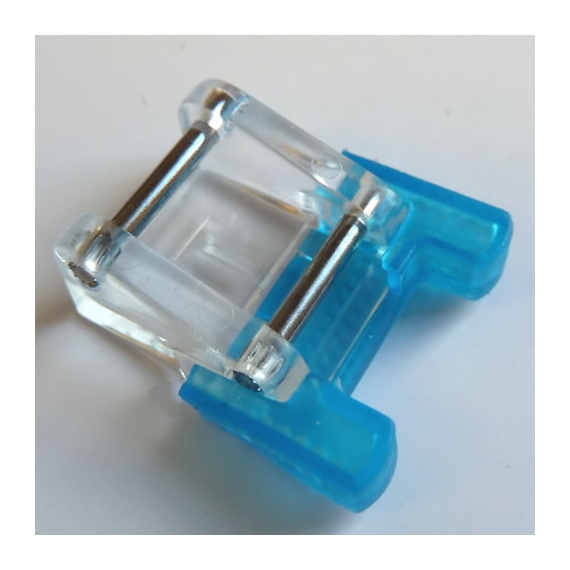 Its ok if you are are only sewing on one button, you may sew it on by hand, however, if you are making a dress that is needing more than one button, this foot can save you time and well as giving a professional stitched-on button look. The Janome Button Foot is quick and easy to use. It sews 2 or 4 hole buttons on to garments or jackets. It will even hold in place the large type buttons while the machine sews them in place. This foot has two bars that attach to the foot shank to provide extra stability and also has a textured, rubber sleeve to hold the button securely in place whilst sewing.