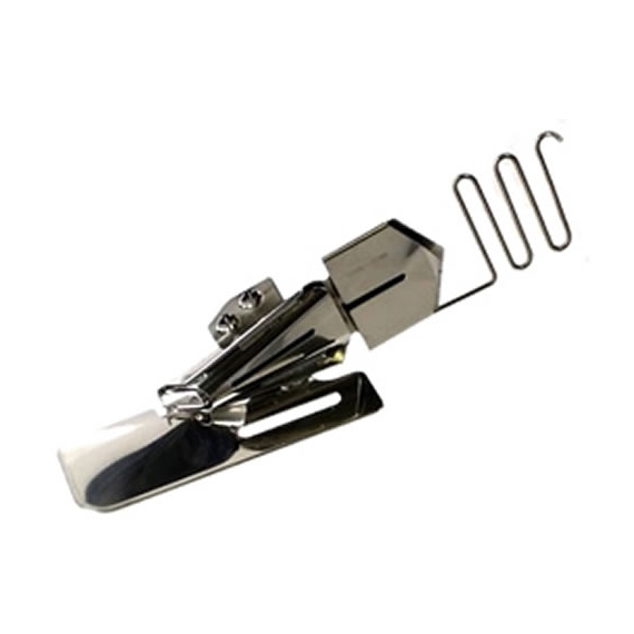 The tape binder is used for finishing and covering the raw edges of stretch fabrics. The binder folds the fabric you wish to use as tape around the raw edge as you sew, allowing you to make beautifully finished necks and arm holes and bind any raw edge with ease.