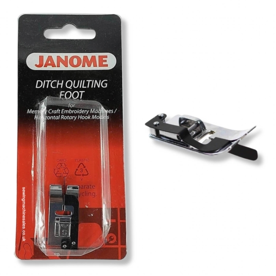 The Janome Ditch Quilting Foot is a very useful addition to the sewing room when wanting a perfectly straight stitch in the ditch.