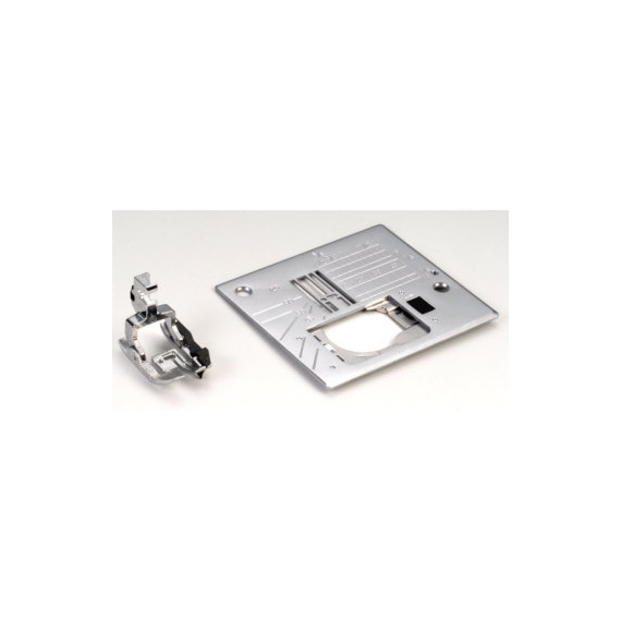 The Janome Acufeed 1/4" Seam Foot and Plate are designed to sew a 1/4 inch seam allowance quickly and accurately.