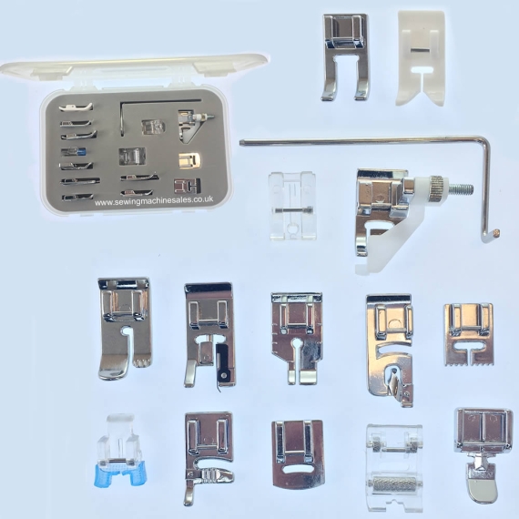 Mending Foot Set with 15 Attachments inc Zipper foot, Patchwork, Roller, Hem Foot