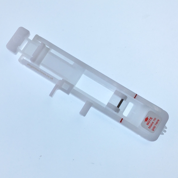 This is the all plastic Automatic Buttonhole foot for many Singer computerised sewing machine models. It is a 1-step buttonhole foot and actually measures the length of the buttonhole as it is being stitched. Every subsequent buttonhole is sewn to the exact same length. Only the starting point of each buttonhole needs to be marked.