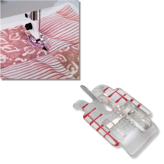 Husqvarna Clear Stitch In Ditch Foot, For excellent visibility, and ease of use, when stitching in the ditch. Guidelined to turn corners for 1/4 inch or 1/8 inch seams. For quilting, garment construction and more.