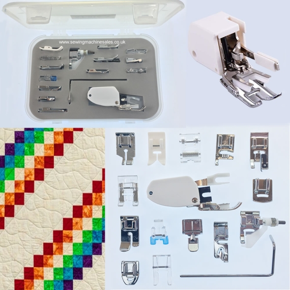 Talent Foot Set with 16 Feet inc Walking foot, 1/4 Seam, Roller, Hem Foot