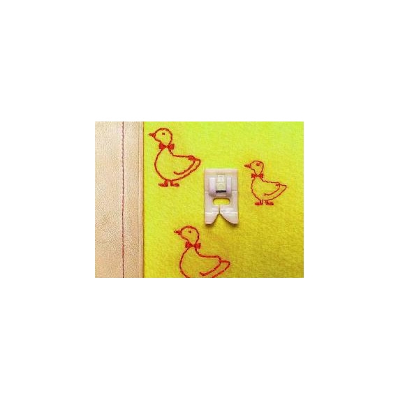 Some fabrics may seem to pull under a metal feet often causing problems in consistent feed resulting in poor stitch quality. The non stick foot overcomes problems with fabric such as loop and hook tapes, leather, and vinyl. The Elna sewing machine foot just glides across the surface.