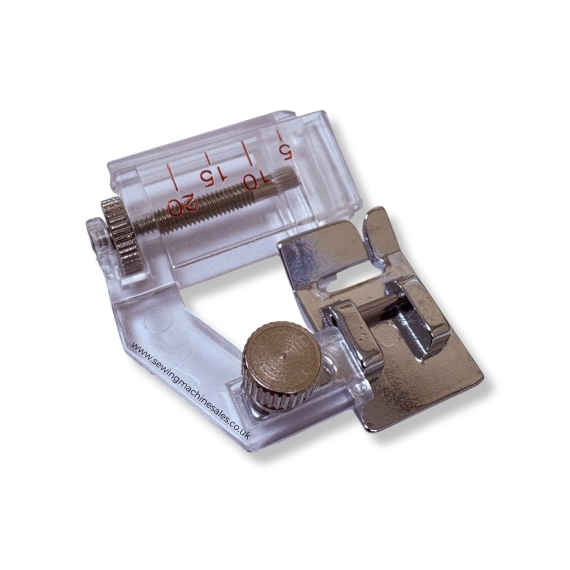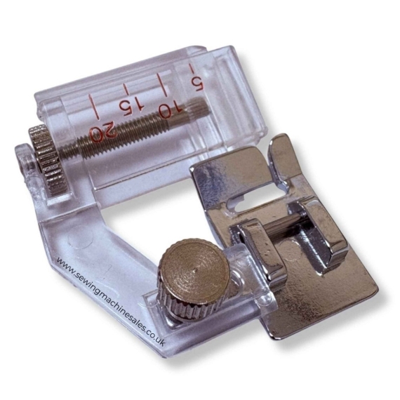 The adjustable guide allows for seamless bias tape attachment from 5mm to 20mm, making it ideal for quilting, garment construction, and decorative sewing. Simply position your fabric and bias tape, adjust the guide, and achieve professional-looking results with ease.