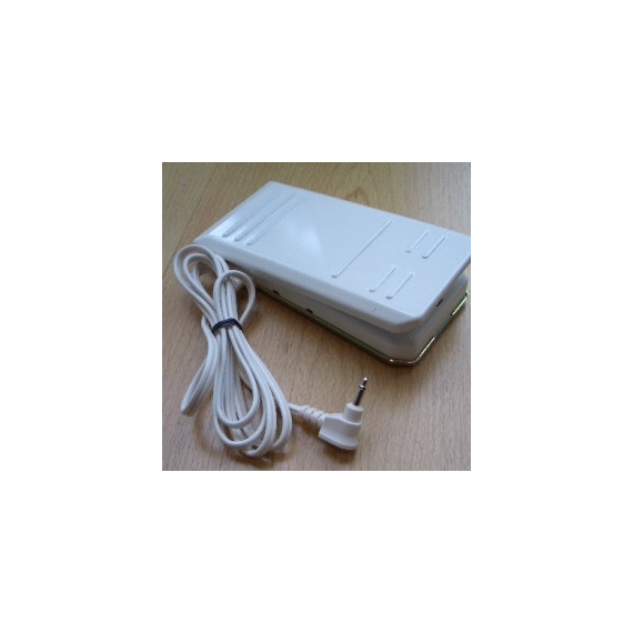 This foot control is white in colour and made from metal, it is suitable for electronically controlled Janome sewing machines. The connection to the machine is via a small hi-fi jack plug type connection.