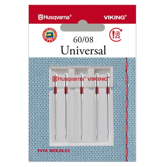 These Husqvarna universal needles come in a pack of 5 and are size 60/08.