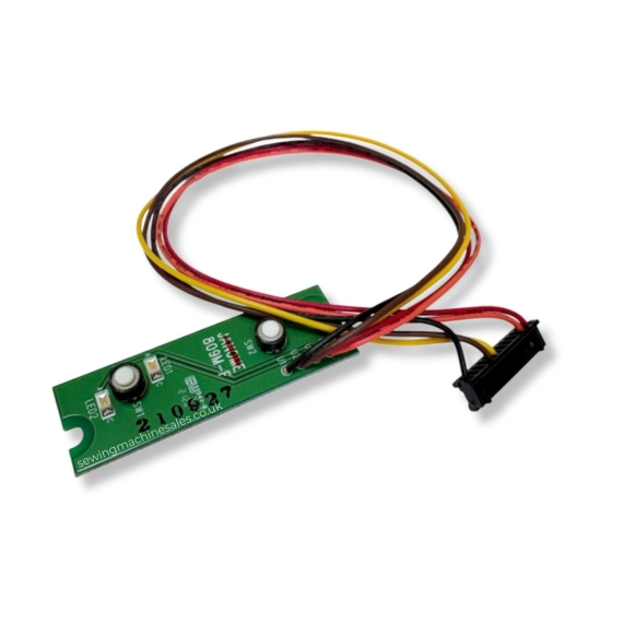 Ensure precise and reliable operation of your embroidery projects with the Janome MC550E Front Cover PCB. This genuine circuit board, part number 809510102, sits directly behind the machine's front casing and is responsible for managing key user inputs, including the all-important Start/Stop button.