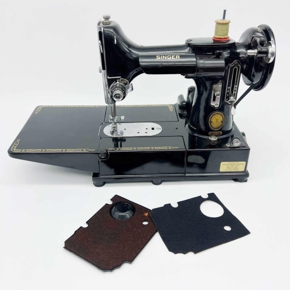 This sticky back felt drip pad is used to gather excess oil from your Singer 222K sewing machine.